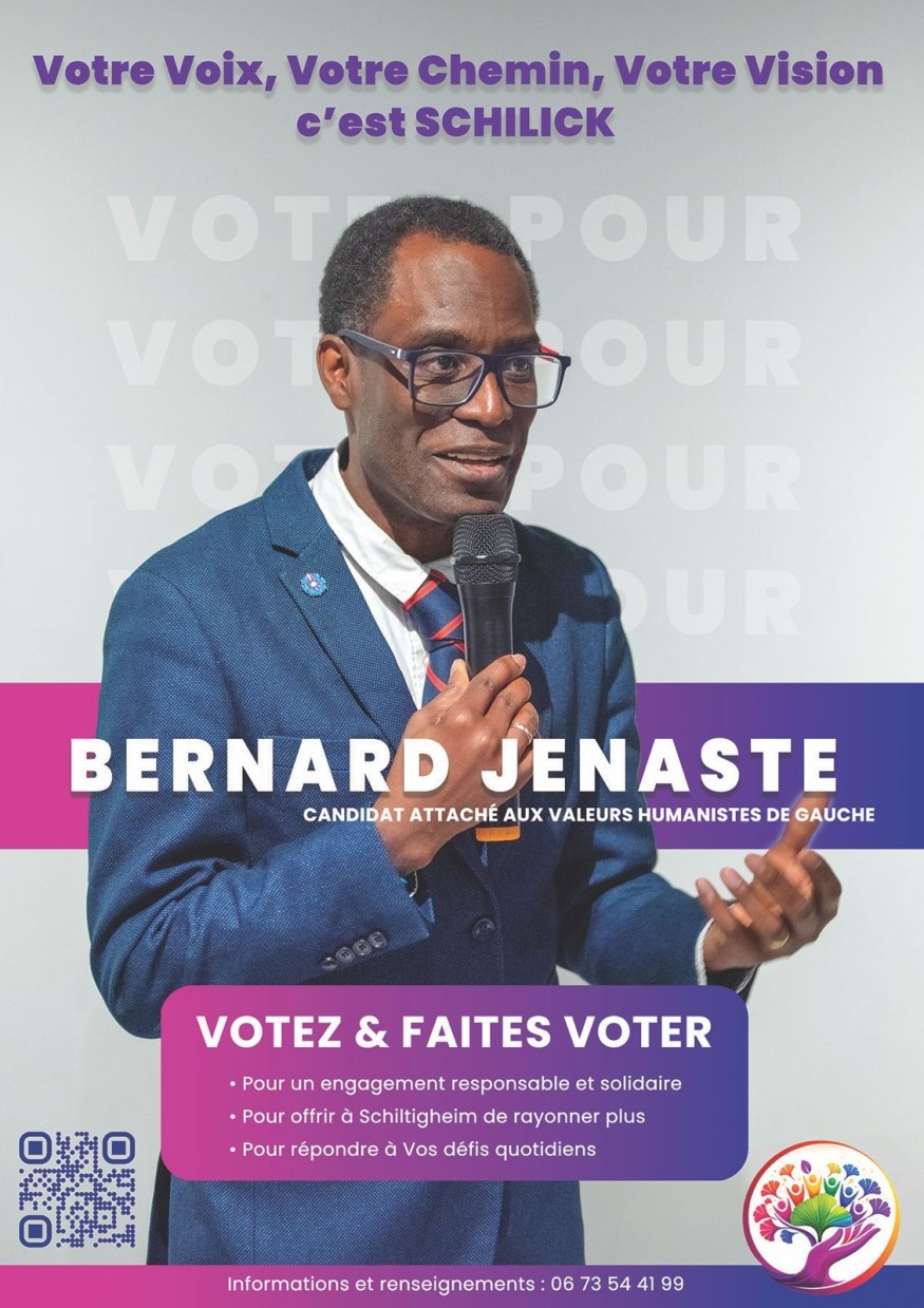 D’origine guadeloupéenne, alsacien de cœur et européen de conviction, Bernard Jénaste incarne une diversité assumée, profondément attachée aux valeurs humaines de gauche. Son engagement repose sur une vision claire : une politique concrète, utile et proche des habitants, tournée vers l’action plutôt que les promesses.